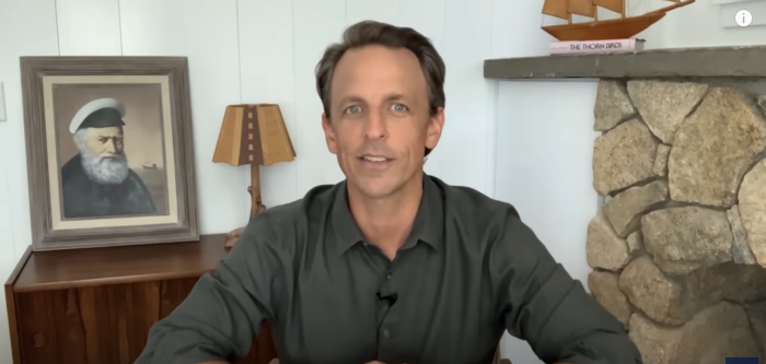 What is going on with Seth Meyers’ quarantine hair? It looks like, I don’t know, late-in-life Robert Urich, or an uncle professor who wears turtlenecks in July. Reminder: This is what Seth Meyers’ hair normally looks like.